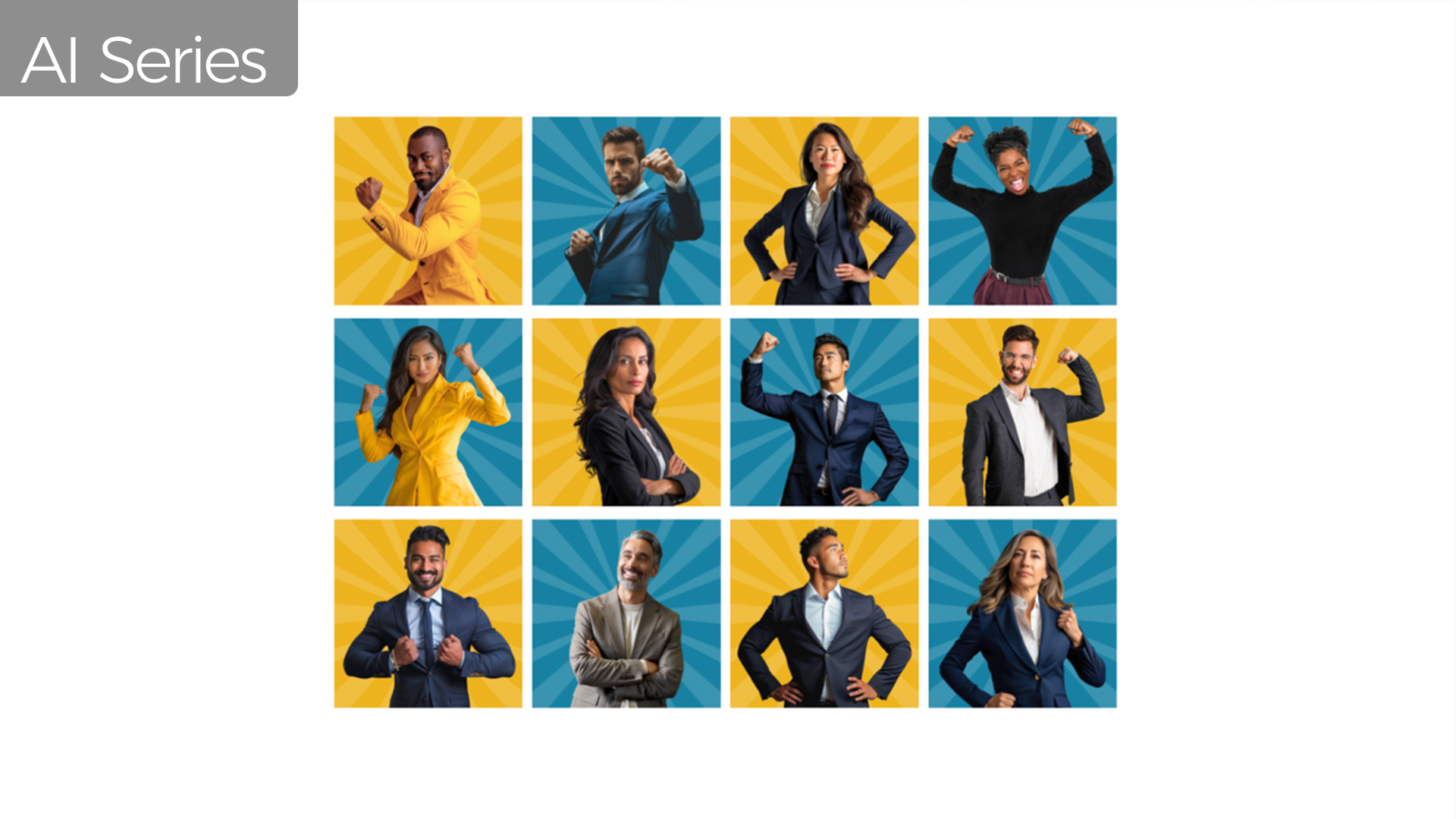 Our client didn’t have the budget to shoot real people. They also wanted a multi-cultural range to represent their industry accurately. And they had a fairly tight timeline. Just a few years ago we would have needed to narrow their expectations. Now we combined a couple AI software tools to create a dozen humans from scratch with the appropriate heroic, campy body language.