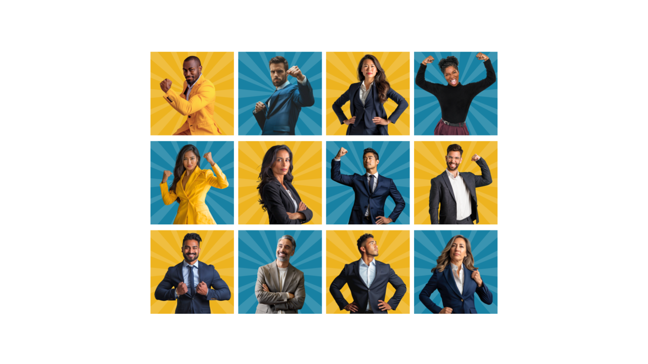 Our client didn’t have the budget to shoot real people. They also wanted a multi-cultural range to represent their industry accurately. And they had a fairly tight timeline. Just a few years ago we would have needed to narrow their expectations. Now we combined a couple AI software tools to create a dozen humans from scratch with the appropriate heroic, campy body language.